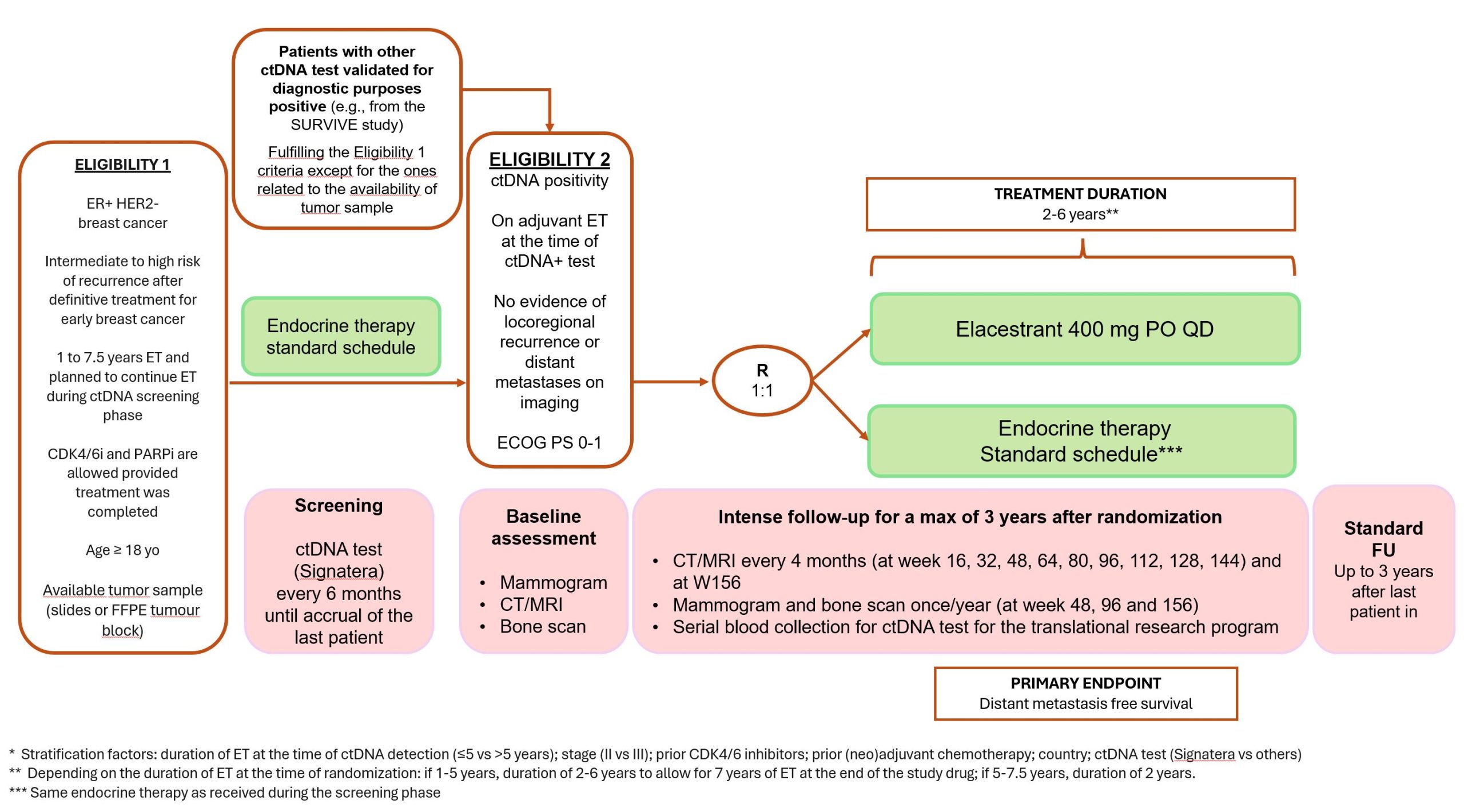 Patients must have received at least 1 year and up to 7 years of ET and planned to continue adjuvant ET during ctDNA screening phase